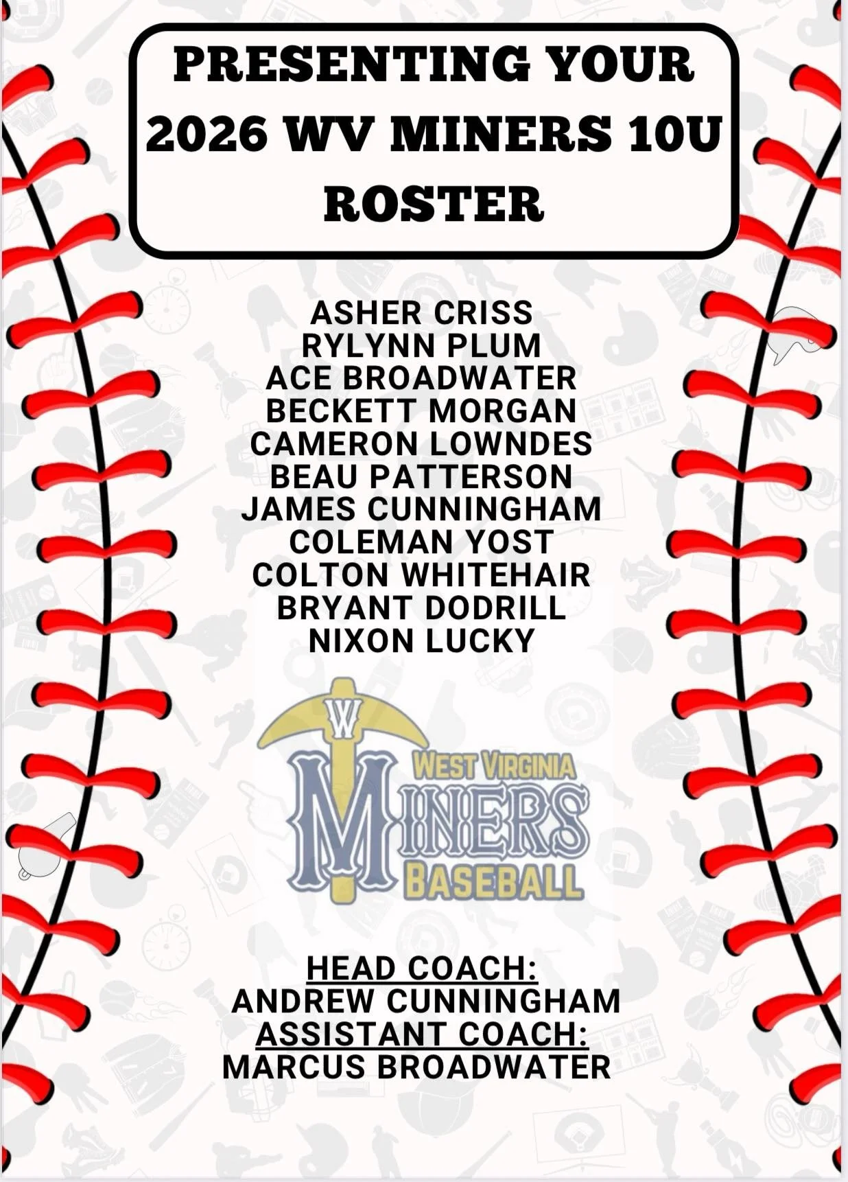 The West Virginia Miners Baseball features six teams in the following age divisions: